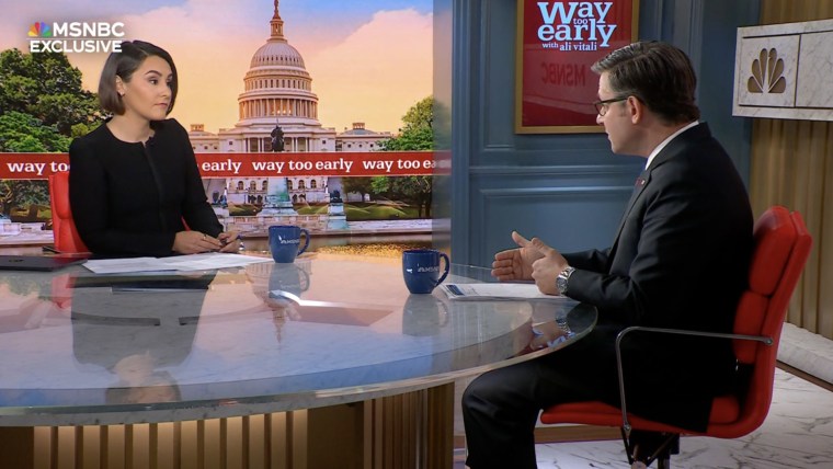 “What I’m saying is we have to keep the lights on in the building so that we can have those discussions and debates,” Johnson said in an interview with MSNBC, his first sit-down with the network as speaker of the House. “Republicans have made no assertions about how that will wind up, but Dec. 31 is when the subsidies end, and so we have effectively three months to negotiate. You know, in the White House and in the halls of Congress, that’s like an eternity. So we need the month of October to figure this out. There’s a lot of thought that’s gone into that on both sides of the aisle, but we need folks in good faith to come around the table and have that discussion, and we can’t do it when the government is shut down.”